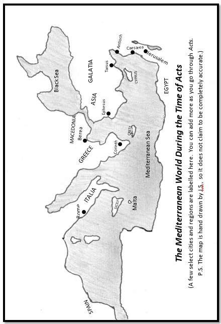 The following hand-drawn maps by the author do not claim to be 100% accurate, but they may be used without any copyright issues. For excellent Bible maps, see resources like Manna Maps.
